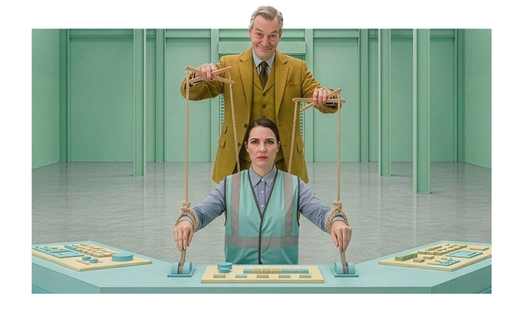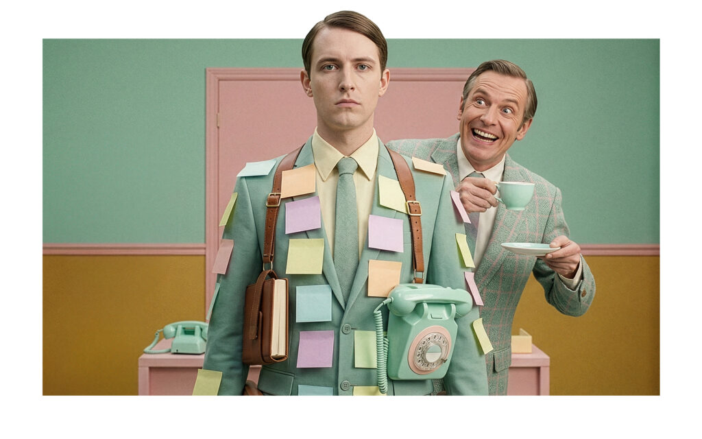 Die Motive unserer Kampagne zeigen typische Situationen aus dem Berufsalltag – erdrückende Aktenberge, Machtspiele oder starre Strukturen. Sie sind bewusst künstlerisch und mit modernen KI-Tools umgesetzt, um diese Themen sichtbar zu machen. Überspitzt in der Darstellung, aber nah an einer Realität, die viele kennen.